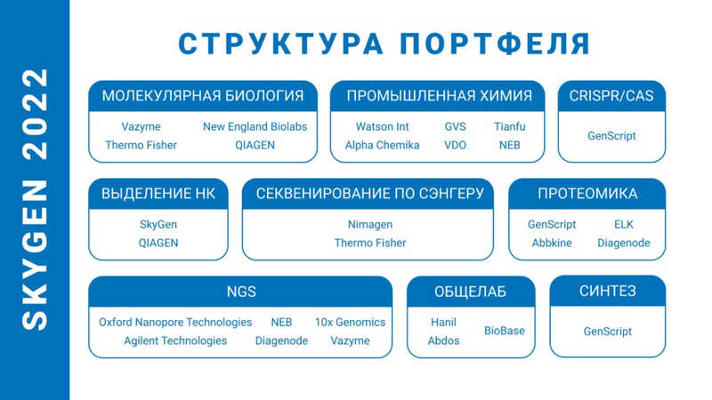 Доставляет необходимые материалы и оборудование для экспериментов в области NGS, CRISPR-CAS, ПЦР и выделения нуклеиновых кислот от мировых life science брендов с 2012 года. За десять лет клиентами SkyGen стали три тысячи научных лабораторий, НИИ и геномных центров в России и странах СНГ.
